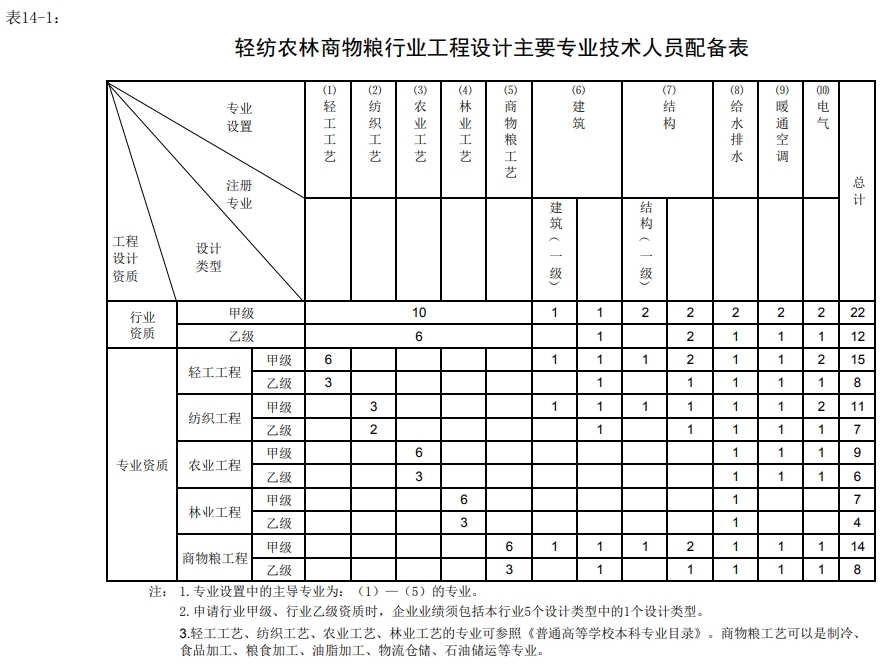 輕紡農(nóng)林商物糧行業(yè)工程設(shè)計資質(zhì)標準2022版